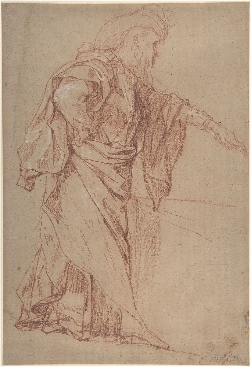 - Medium: Red chalk, heightened with white, on beige paper