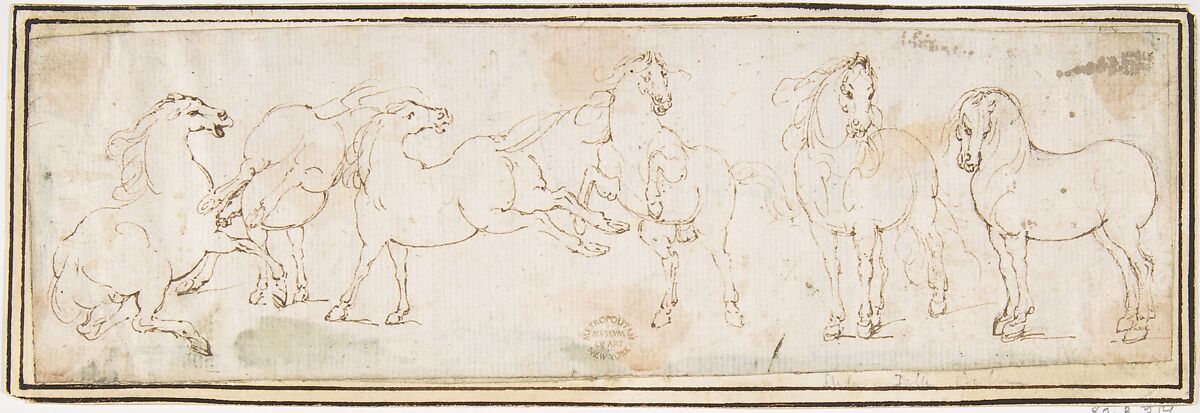 - Medium: Pen and brown ink. Framing lines in pen and brown ink on mount