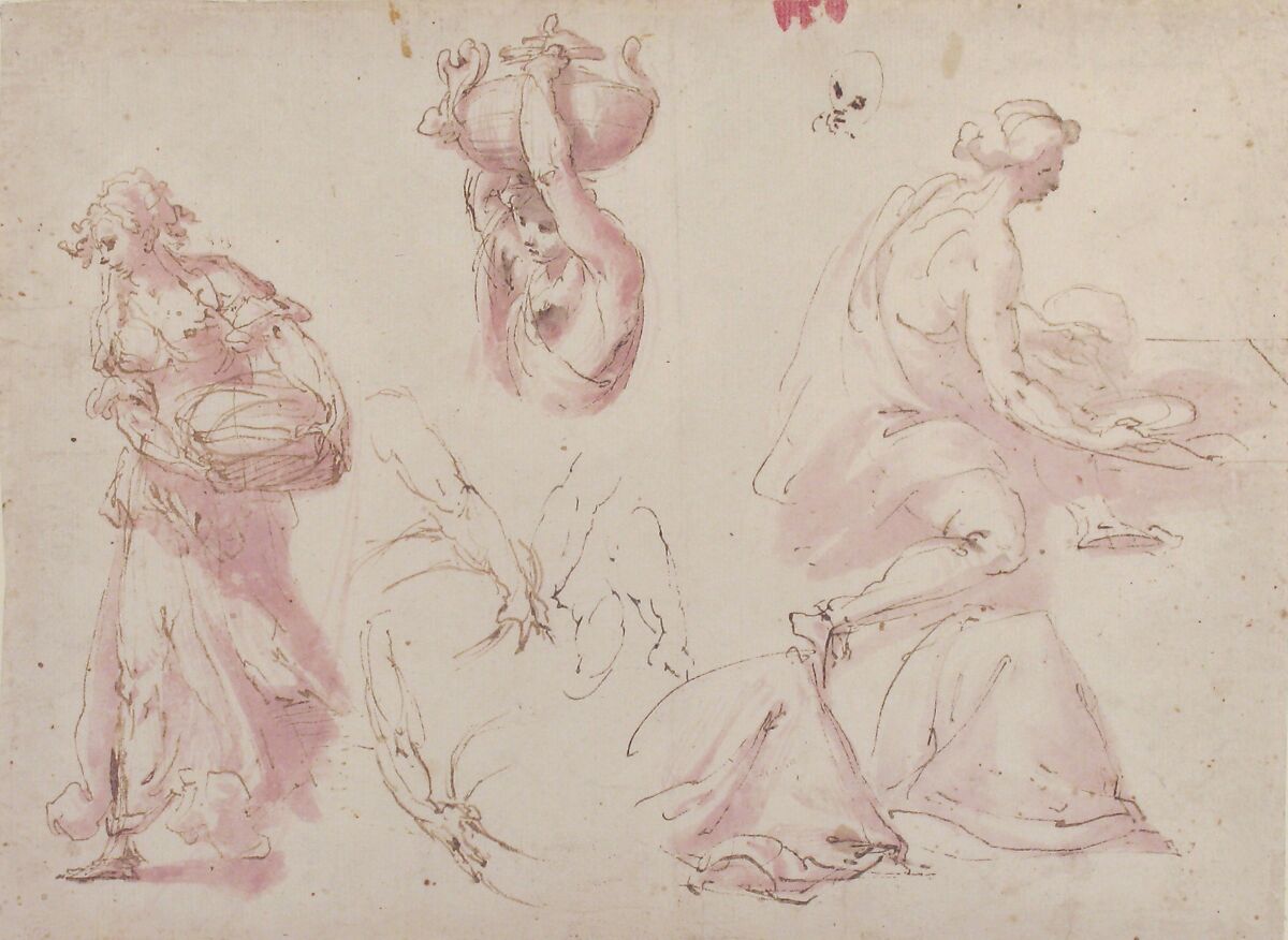 Francesco Curia can be rightly considered the most relevant artist active in Southern Italy during the Sixteenth century. The present sheet is one of eight pen sketches (Metropolitan Museum of Art, inv. nos.1970.101.4-11) figured in an album containing "97 pezzi di Francesco Curia" (97 pieces by Francesco Curia:) once in the collection of Nicodemus Tessin the Younger (1654-1728), and then inherited by his son Carl Gustav Tessin (1695-1770), the greatest Swedish collector of drawings of the Eighteenth century. It seems to have been broken up in the latter's lifetime. Eighty-two of these sheets are now in the Nationalmuseum in Stockholm; those in the Metropolitan Museum came to New York by way of a Swedish collector who acquired them from a collateral descendant of Tessin. In their studies, Per Bjurström and Walter Vitzthum have pointed out the importance of this group of drawings, which forms a touchstone for our knowledge of Francesco Curia as a draughtsman, the most relevant artist of Southern Italy in the Sixteenth century. One of the Stockholm sketches is on a letter addressed to Curia, and another is a study for a painting in the Cathedral of Naples (See here "References" and Per Bjurström, Italienska Barockteckningar, exhibition catalogue, Nationalmuseum, Stockholm, 1965, p. 21, no. 81).
