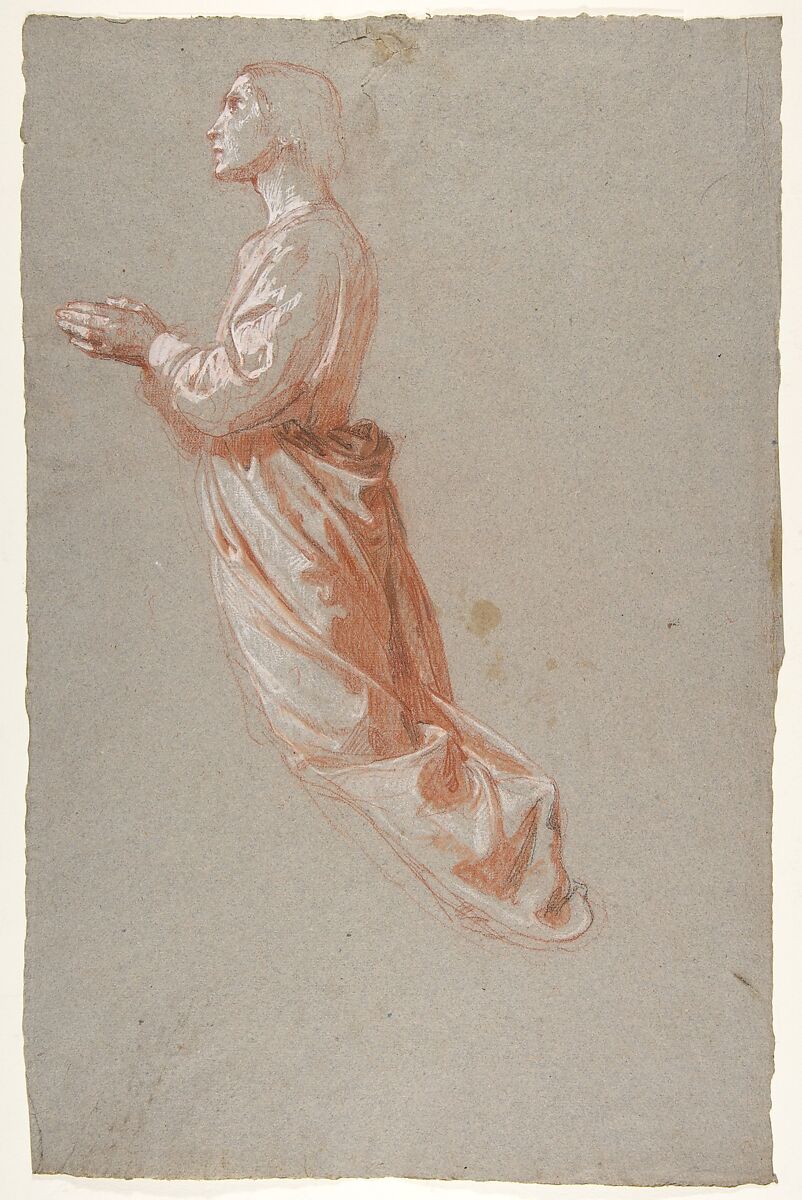 - Medium: Red chalk, stumped, heightened with white chalk and gouache, with traces of black chalk, on gray paper