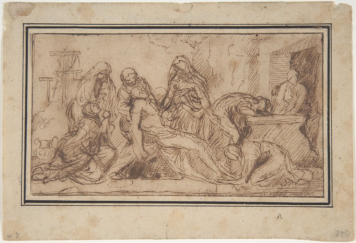 The drawing is late and is very probably from a study for The Lamentation in the National Gallery of Ireland, Dublin.