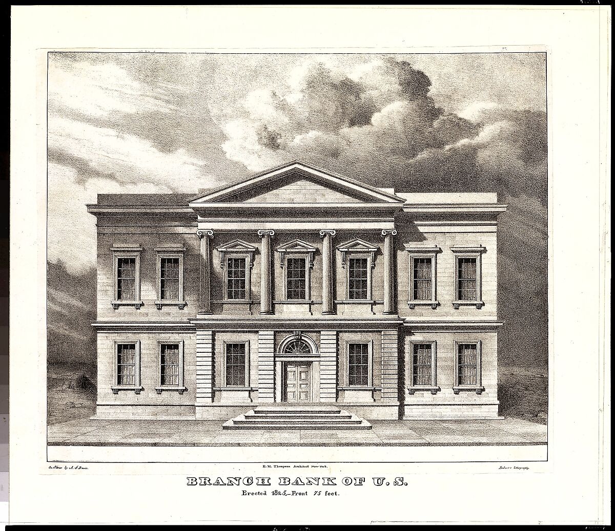 - Title: The Branch Bank of the United States, Wall Street, New York, Erected in 1825 (from Views of the Public Buildings in the City of New York Correctly Drawn on Stone by A. J. Davis, 1827)