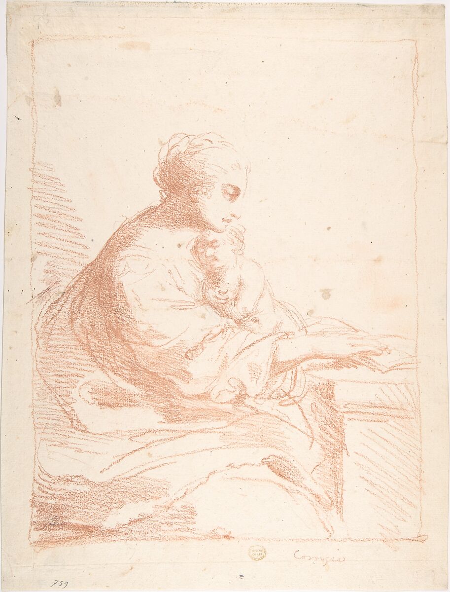 - Medium: Red chalk over traces of black chalk on cream paper