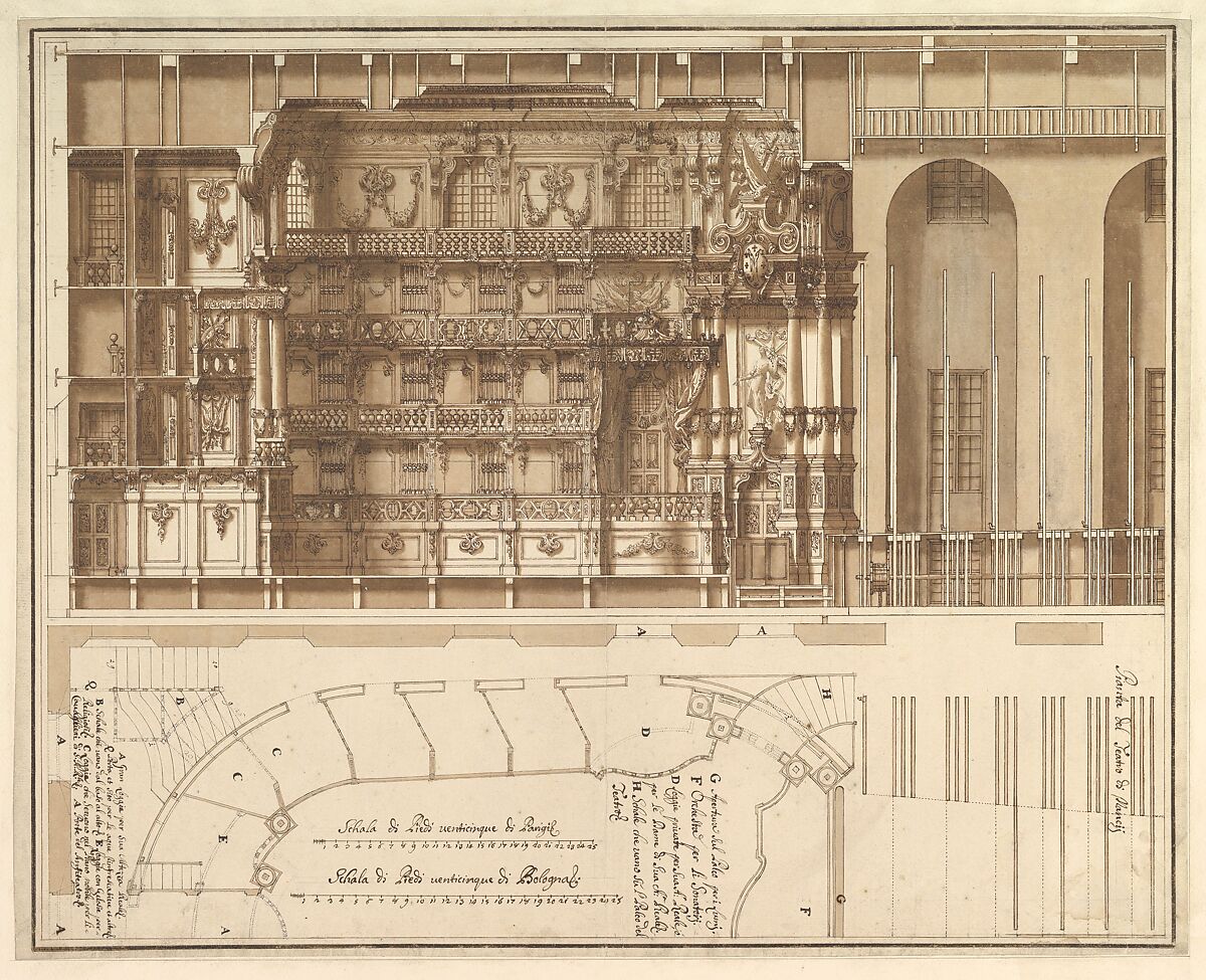 - Title: Designs for the Theater at Nancy: Longitudinal Section and Half Ground Plan