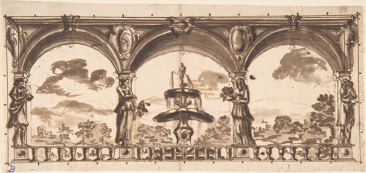 - Title:Loggia with Caryatids before a Fountain and Landscape