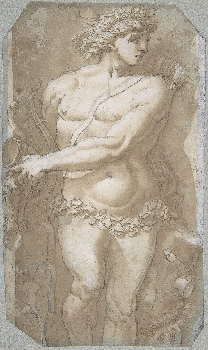 - Medium:Pen and brown ink, brush and brown wash, over black chalk, brush and white gouache highlights, on light blue paper, faded to light brown