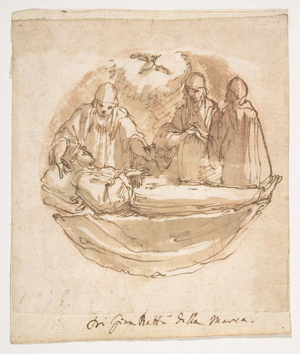 - Medium: Pen and brown ink, brush and brown wash, over red chalk
