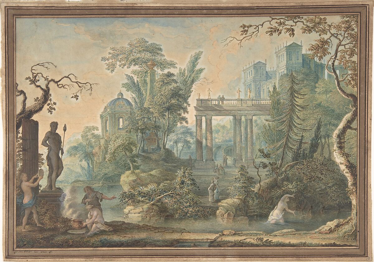 - Title: Arcadian Landscape with several Figures and a Statue of Apollo