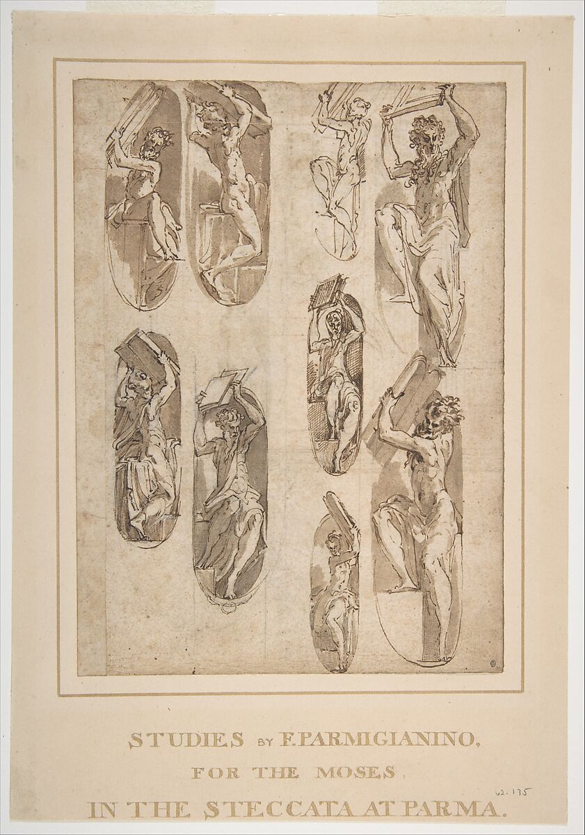 - Title: Nine Studies of the Moses in Santa Maria della Steccata, Parma (recto); Nine Studies for the Eve in Santa Maria della Steccata, Parma (verso)