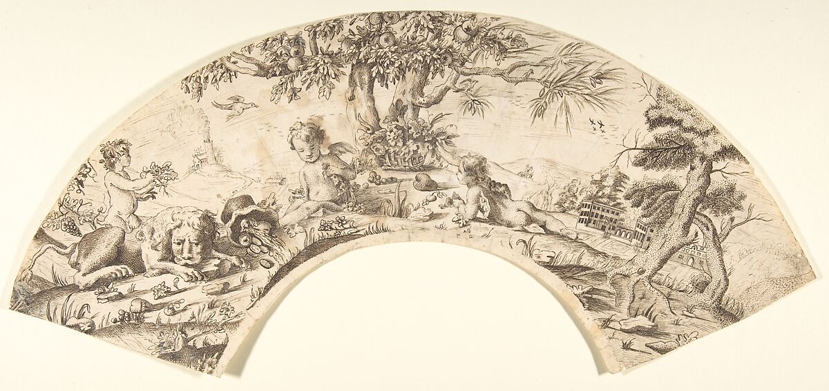 - Title: Design for a Fan: Scene of Cupids, and a Sleeping Lion in a Landscape