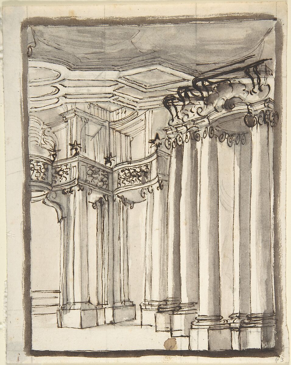 - Title: Partial View of an Architectural Interior (recto); Undecipherable Sketches (verso)