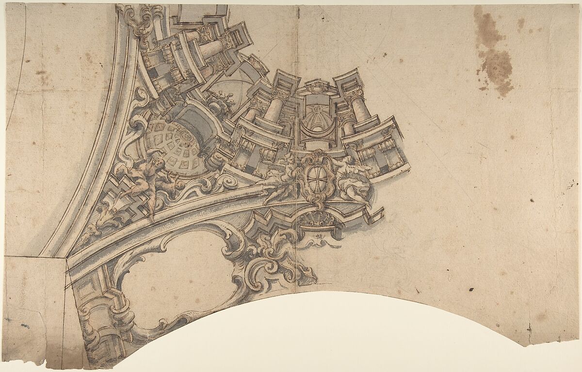 - Title:Design for a Part of a Painted Vaulted Ceiling with a Coat of Arms in Form of a Cross
