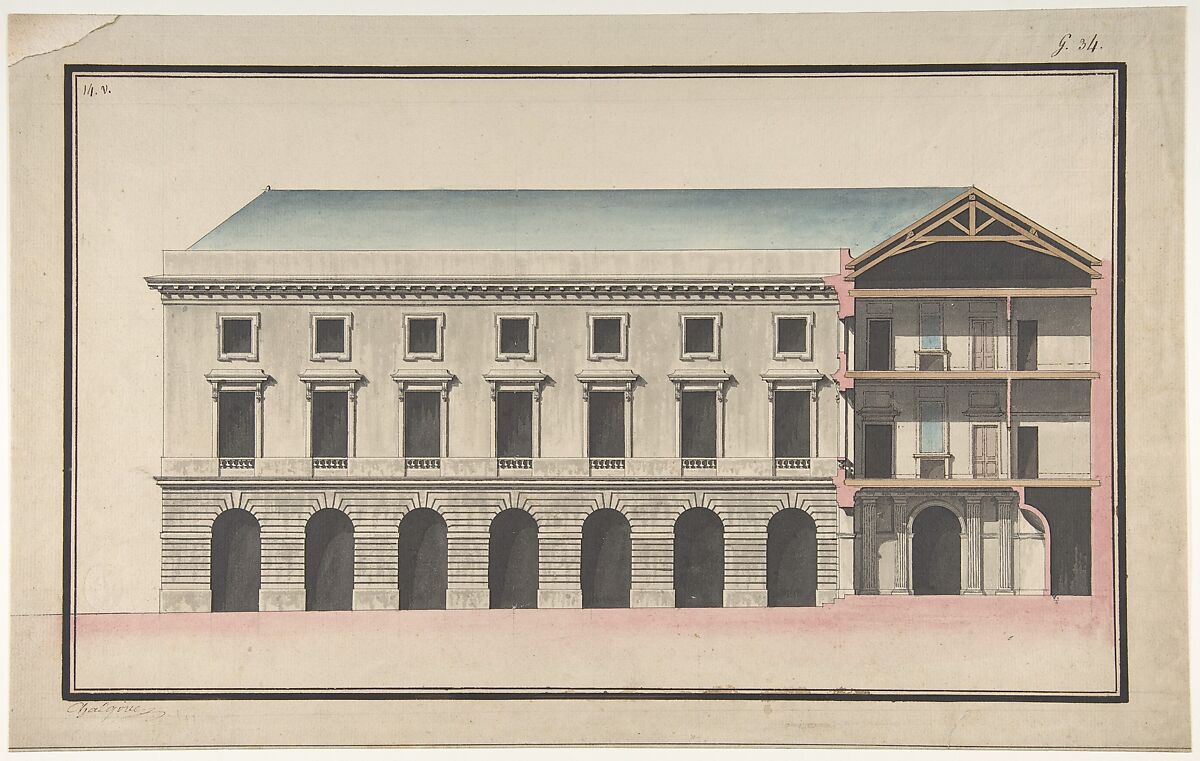- Title: Design for the Collège de France, Paris: Elevation of the Wings of the Court with a Transverse Section through Main Front