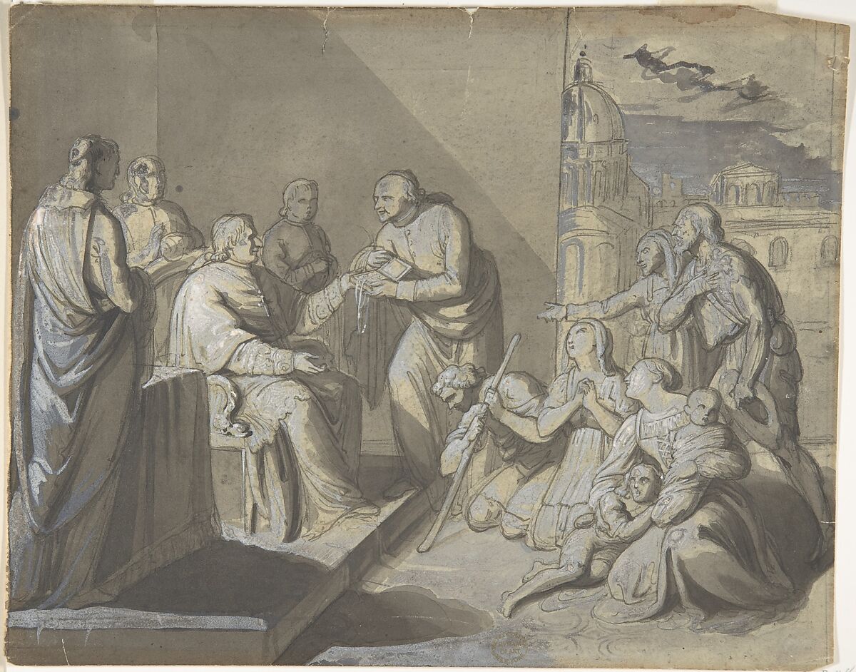 - Title:Scene with the Presentation of a Saint's Relic (recto); Head of a Woman (verso)