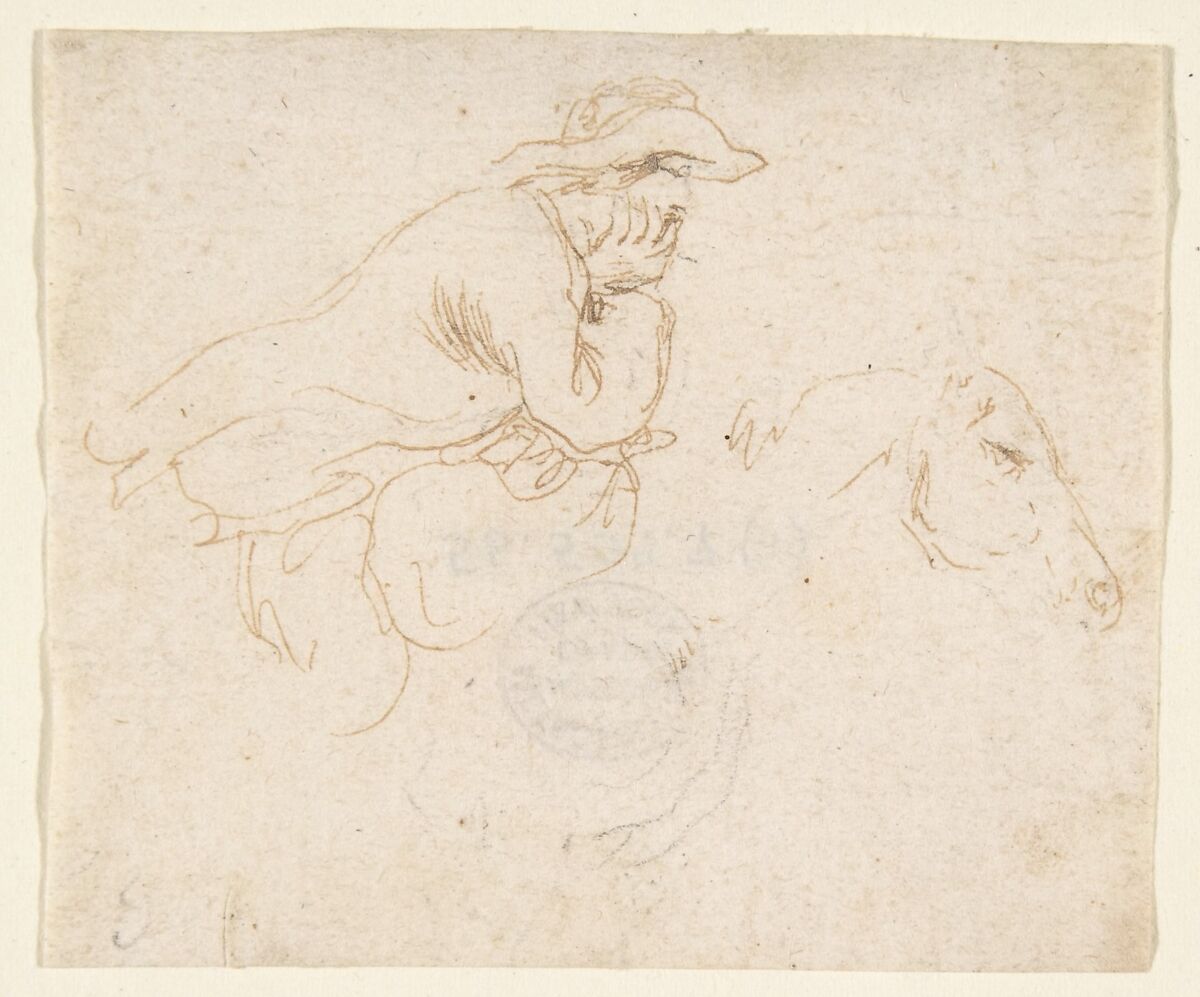 - Title:Man on Horseback seen in Profile View Facing Right.