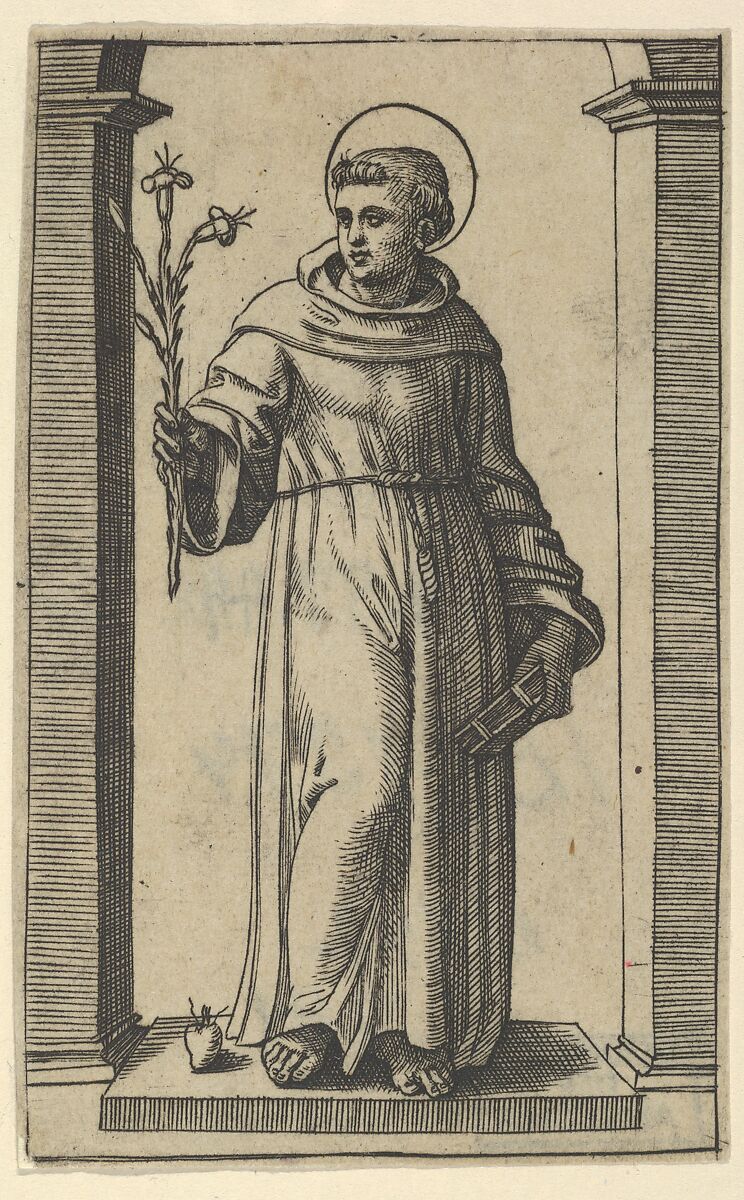 - Title: Saint Anthony of Padua standing, lillies in his raised right hand, a book in his left, from "Piccoli Santi" (Small Saints)