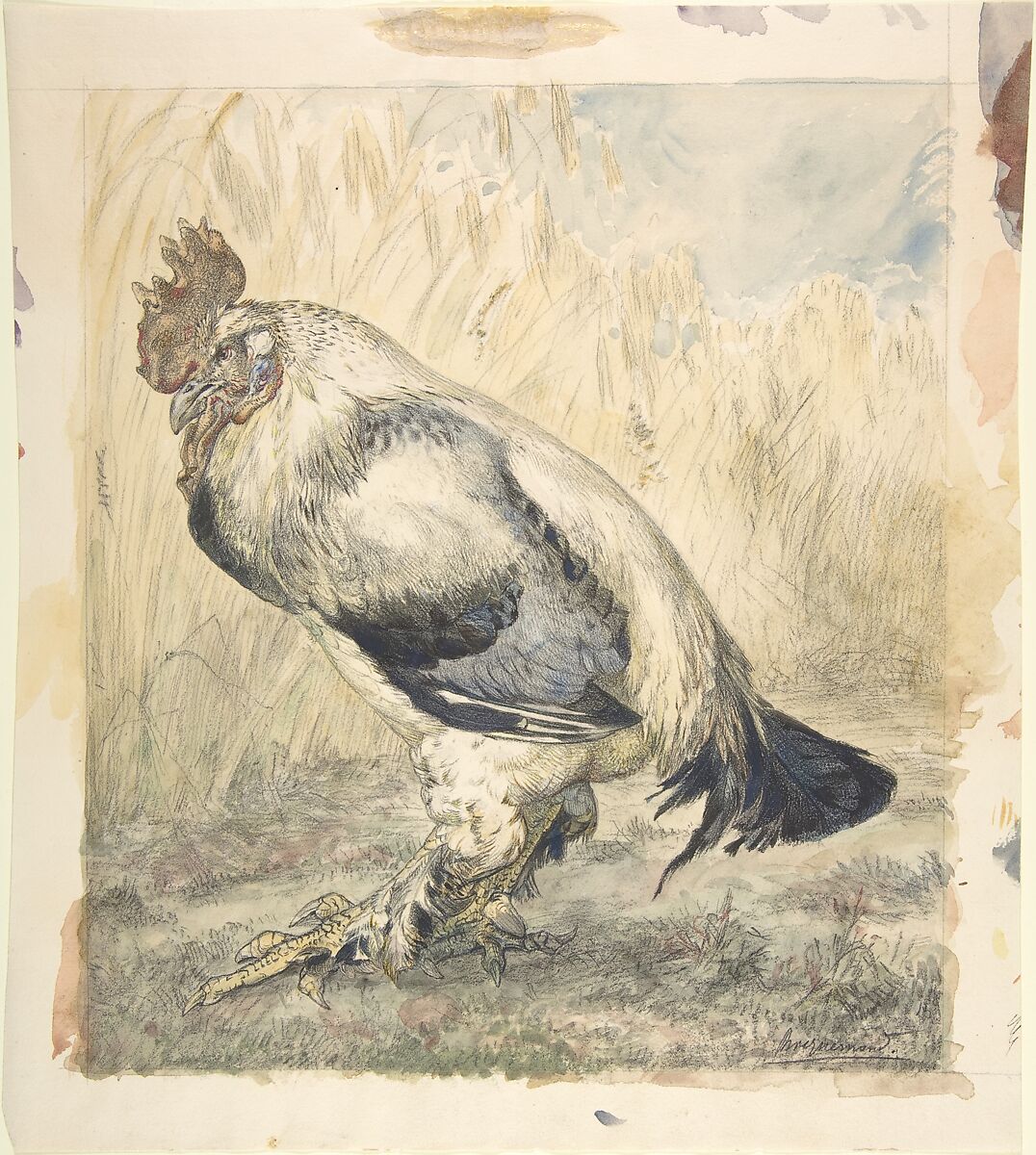 - Medium: Watercolor over black chalk
