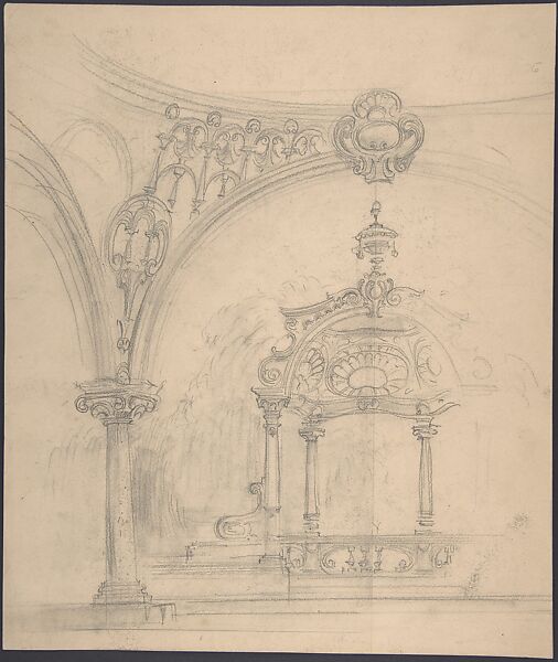 - Title:Stage Set Design: View of a Baldacchino seen through Rounded Arch with Pendentive and Column