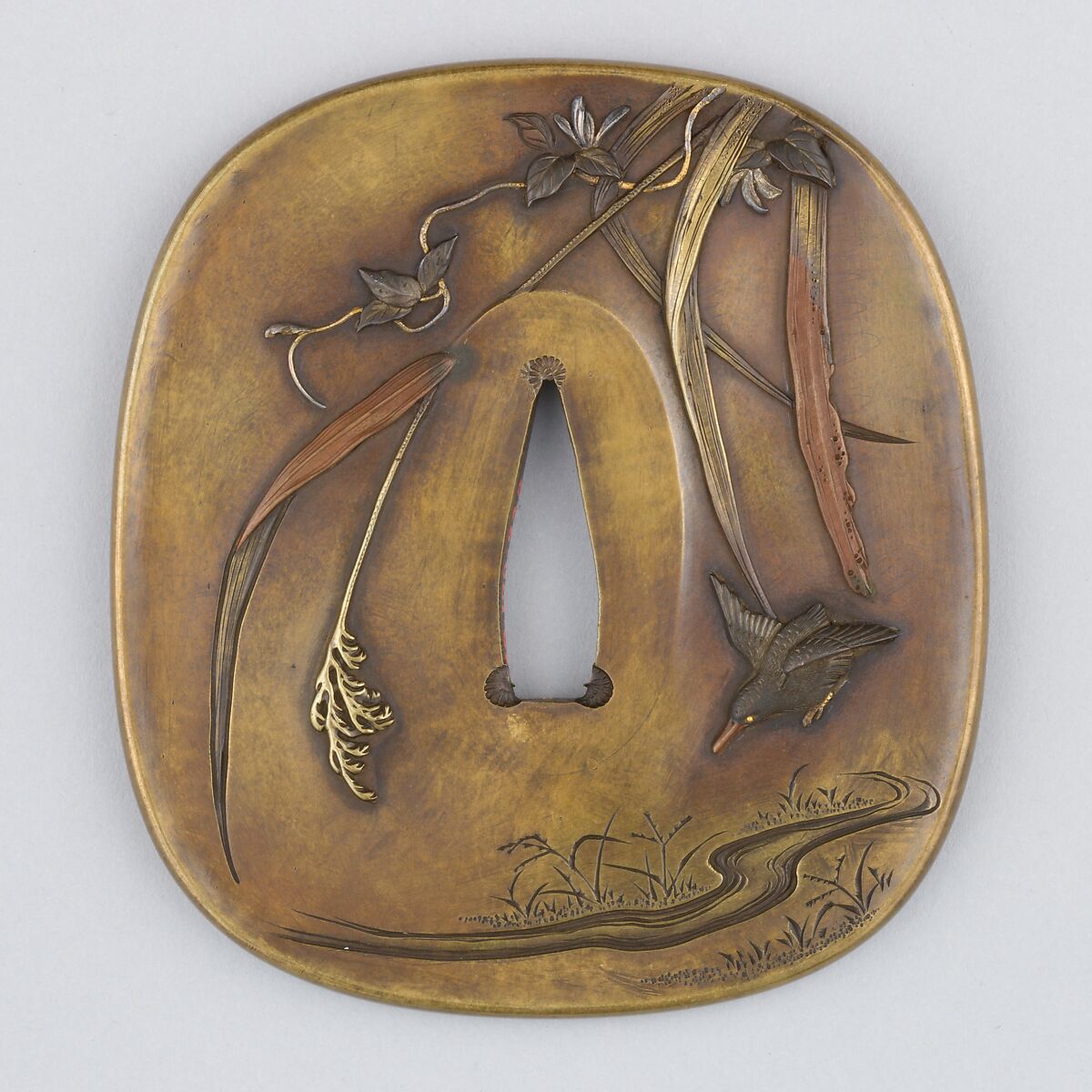 A tsuba is a sword guard and part of a sword mounting. It is mounted between the sword’s blade and grip to protect the user’s hands.
