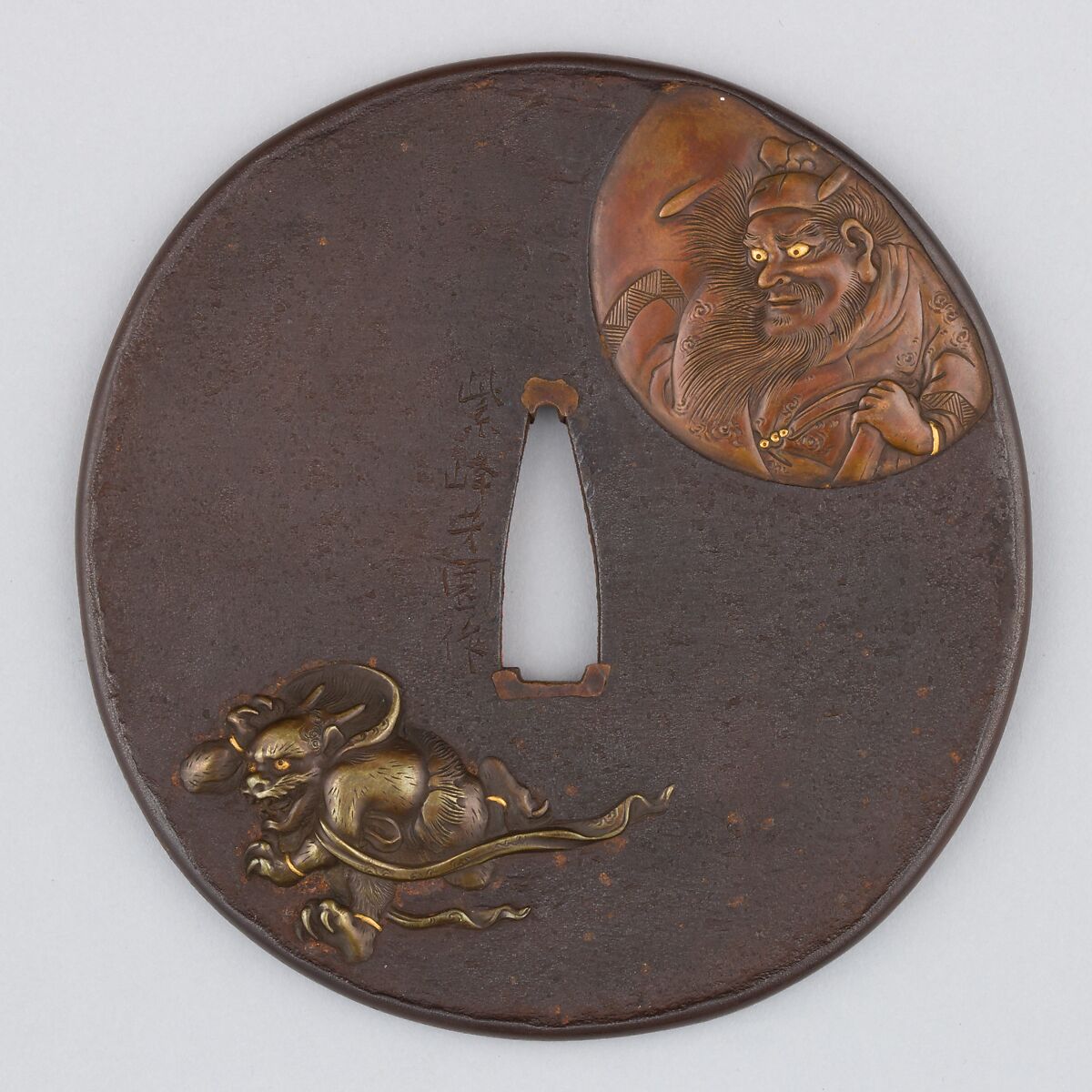 A tsuba is a sword guard and part of a sword mounting. It is mounted between the sword’s blade and grip to protect the user’s hands.