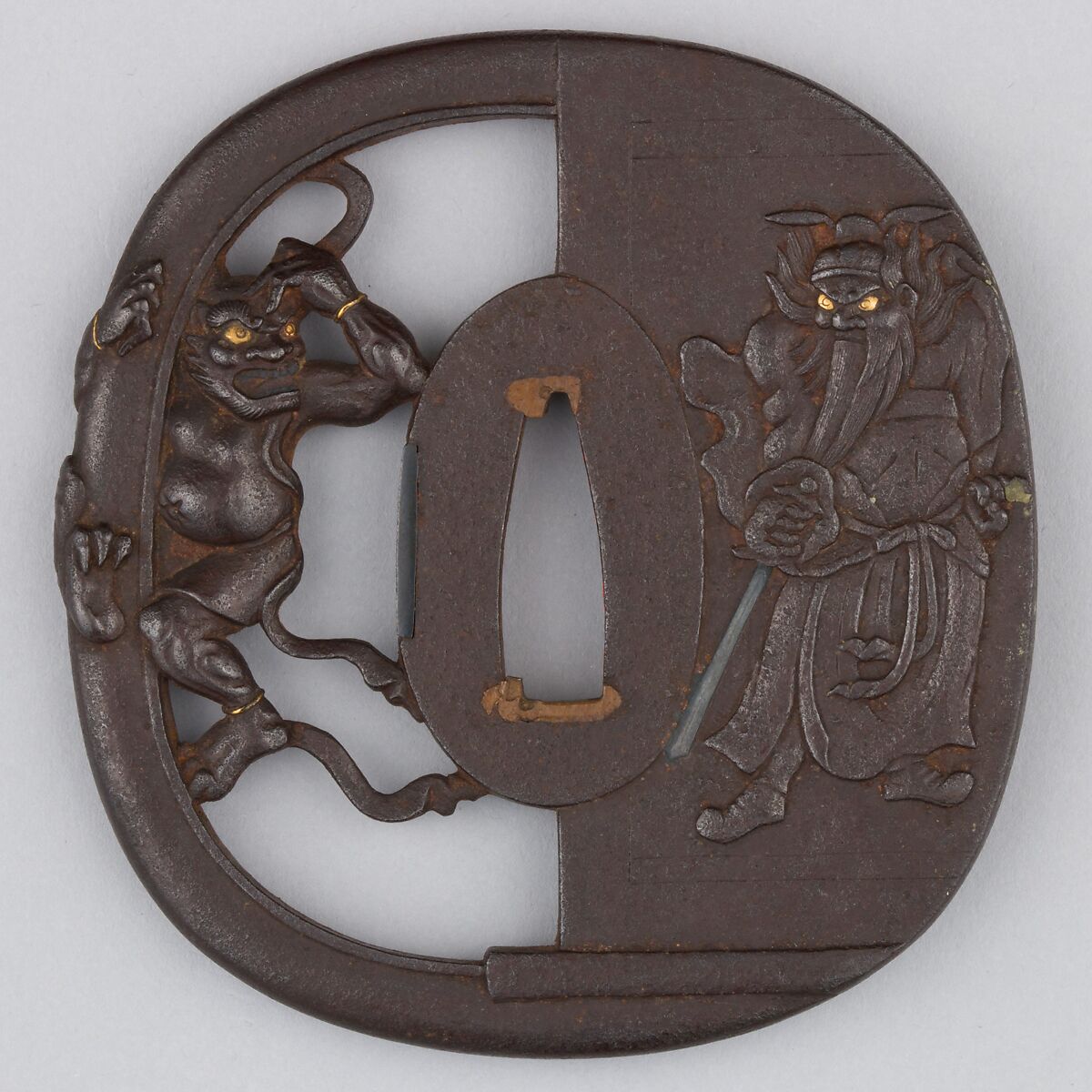 A tsuba is a sword guard and part of a sword mounting. It is mounted between the sword’s blade and grip to protect the user’s hands.
