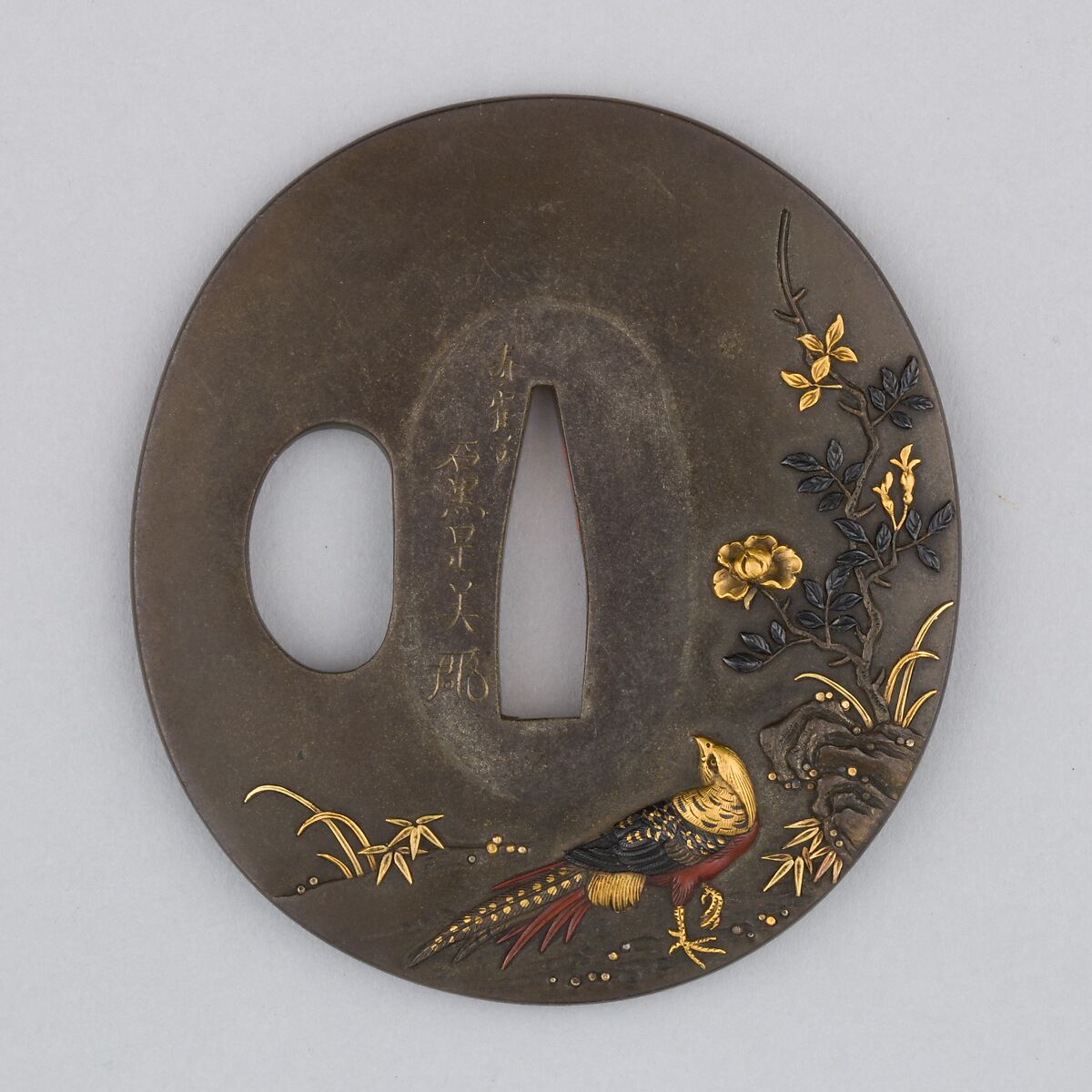 - Medium: Copper-gold alloy (shakudō), gold, copper, silver