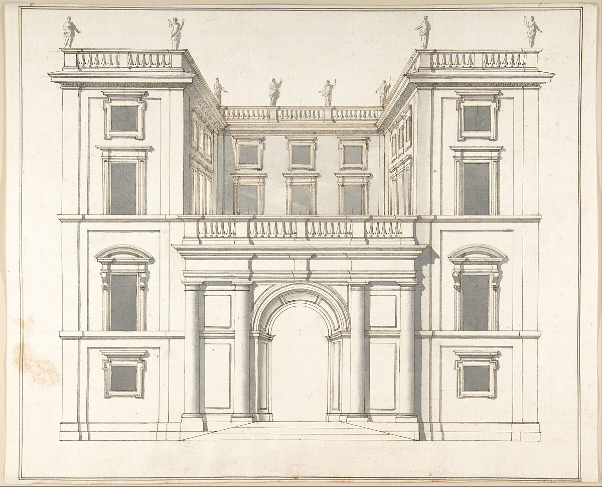 - Medium:Pen and brown ink, brush and gray wash, over traces of ruling in graphite