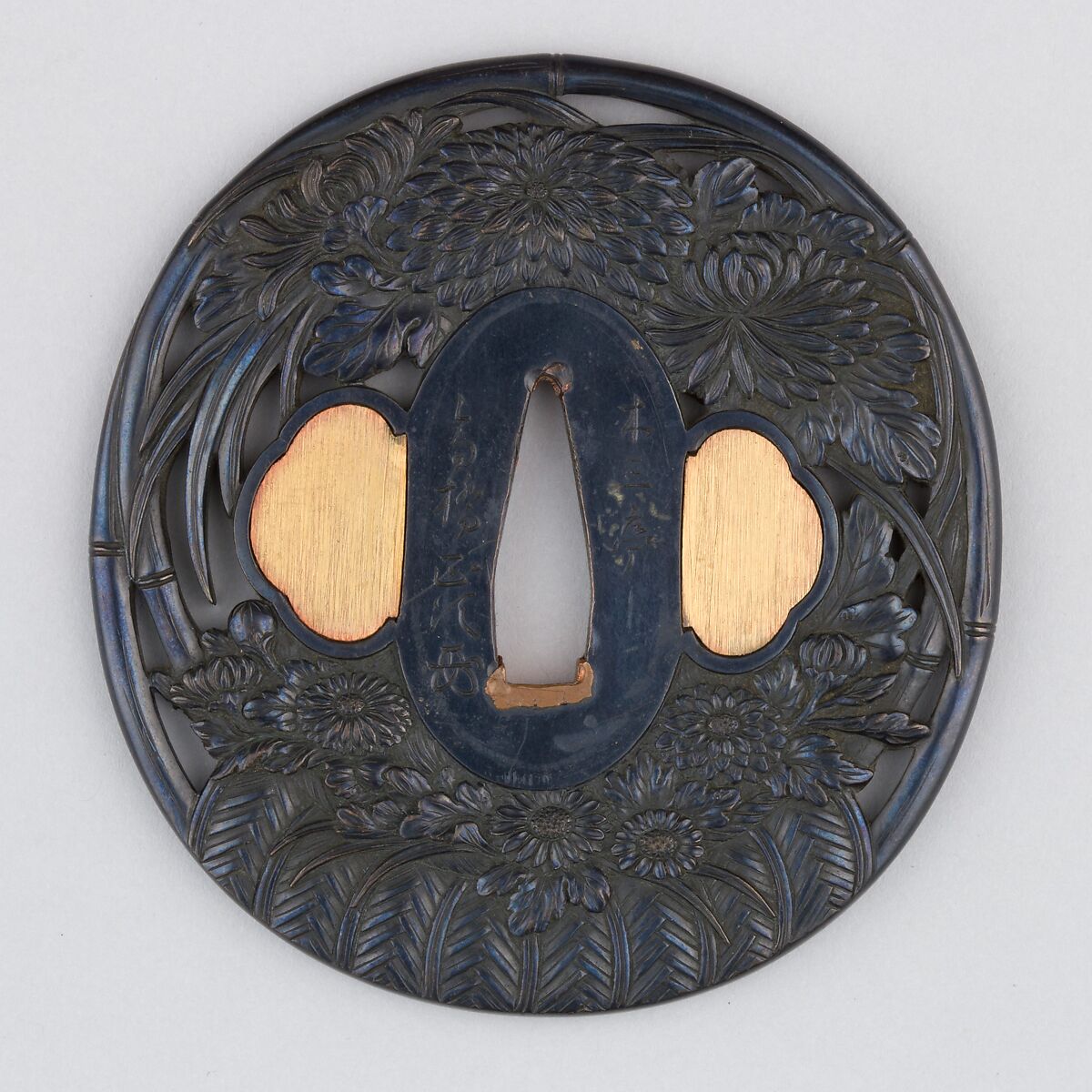 - Medium: Copper-gold alloy (shakudō), copper, gold