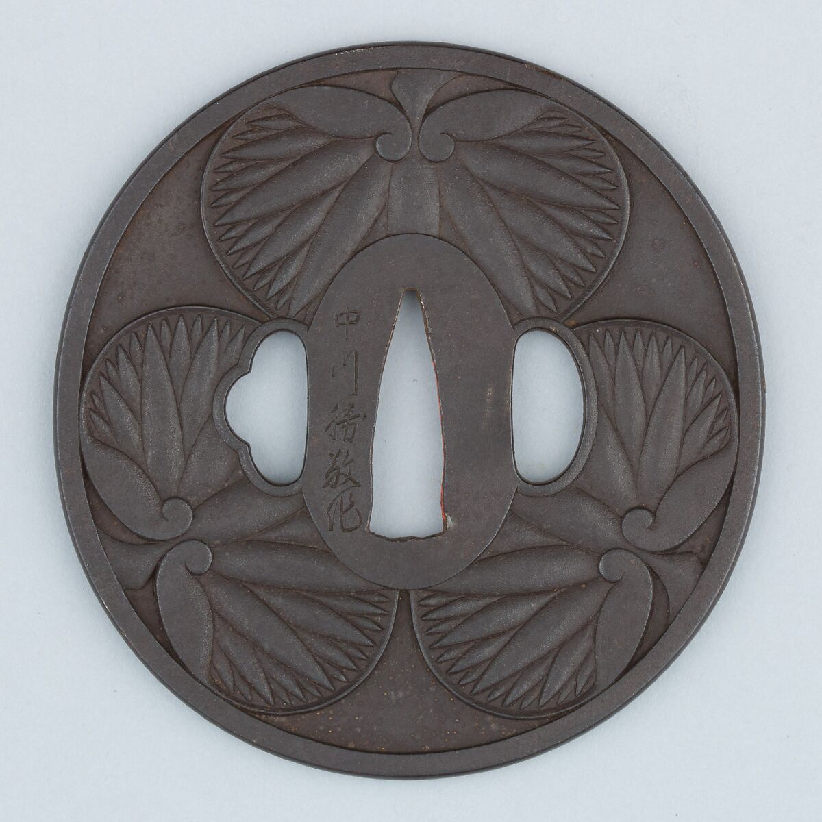 A tsuba is a sword guard and part of a sword mounting. It is mounted between the sword’s blade and grip to protect the user’s hands.
