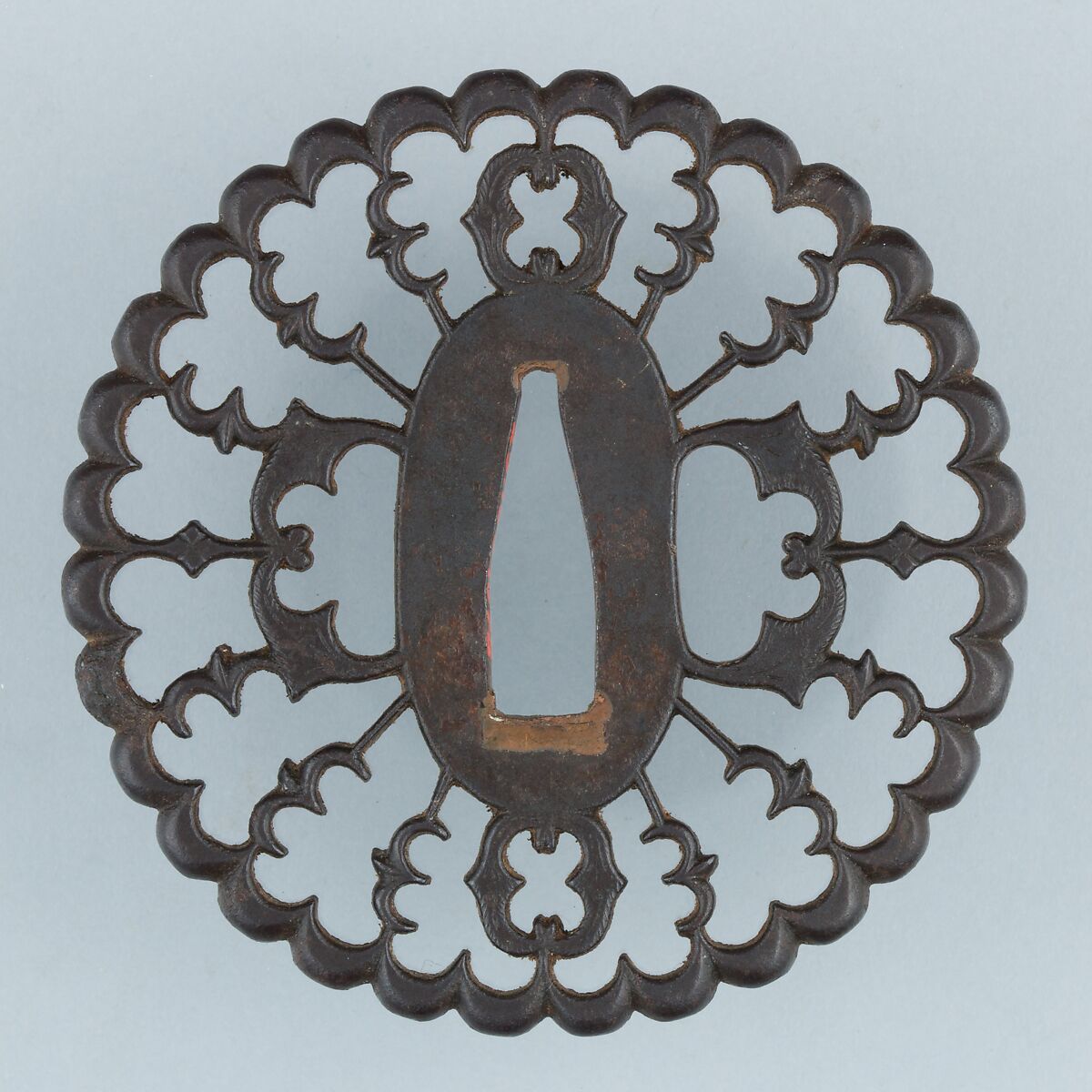 A tsuba is a sword guard and part of a sword mounting. It is mounted between the sword’s blade and grip to protect the user’s hands.