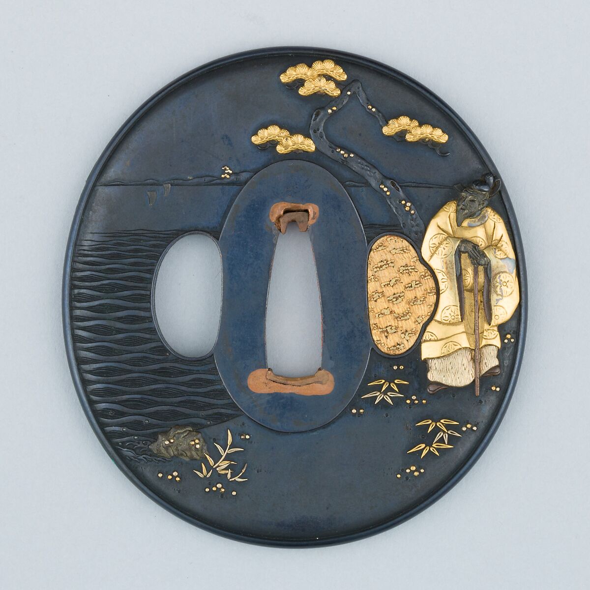 - Medium: Copper-gold alloy (shakudō), gold, copper-silver alloy (shibuichi)