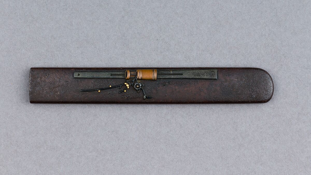 A kozuka is a handle of a by-knife that is part of a sword mounting. It is kept in a slot on the reverse of a katana scabbard, often with a matching kōgai (hairdressing tool).