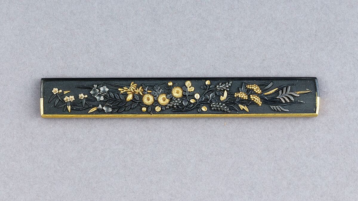 - Medium: Copper-gold alloy (shakudō), gold, silver
