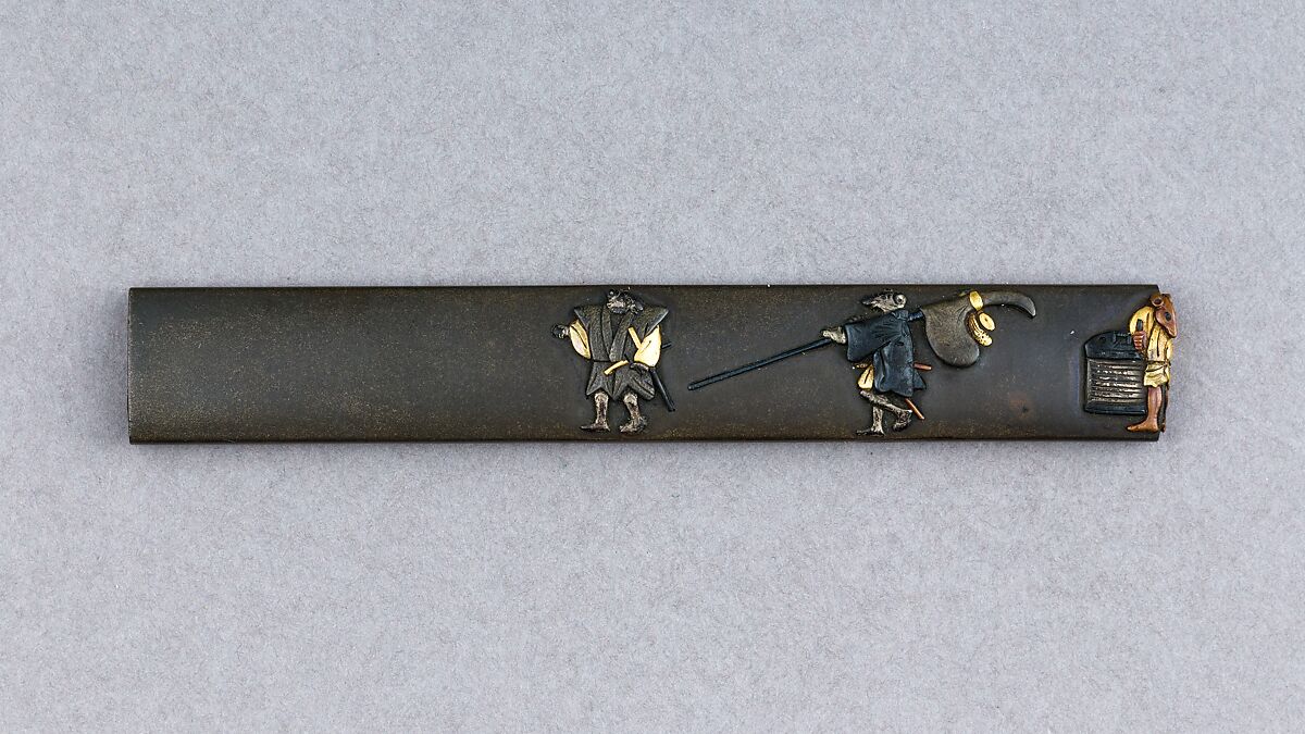 A kozuka is a handle of a by-knife that is part of a sword mounting. It is kept in a slot on the reverse of a katana scabbard, often with a matching kōgai (hairdressing tool).