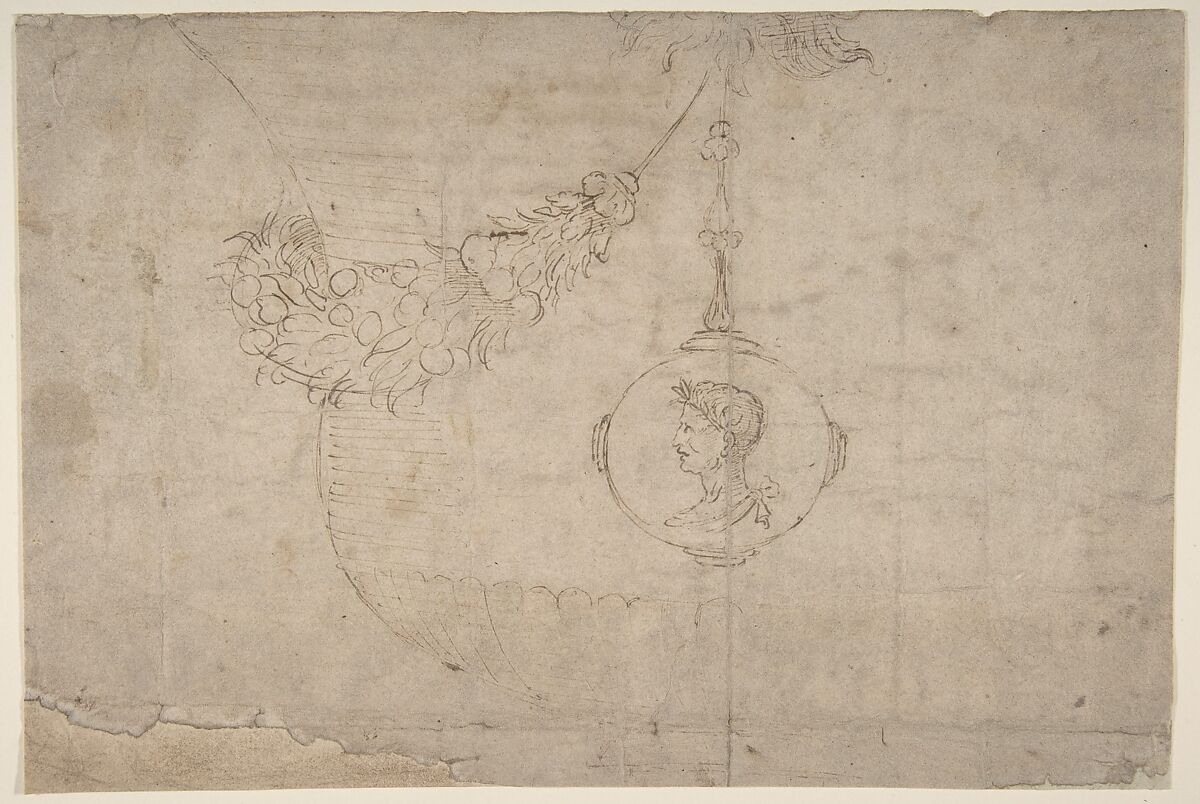 - Title: Design for an Urn with Garland of Vegetables and Fruit and Medallion with Profile of a Caesar