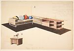 - Title: Divano, seoffale, e stipetto [Perspective of L-Shape Sofa and Storage Unit]