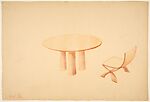 - Title: Tavolo e sedin [Perspective of a Circular Table with 3-Pedestal Base and a Side Chair]