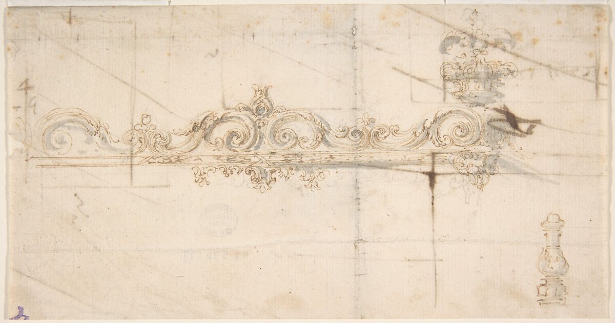 - Title: Design for the Crowning Decorations of a Gate (recto); Sketches of Stone Blocks with Measurements (verso)