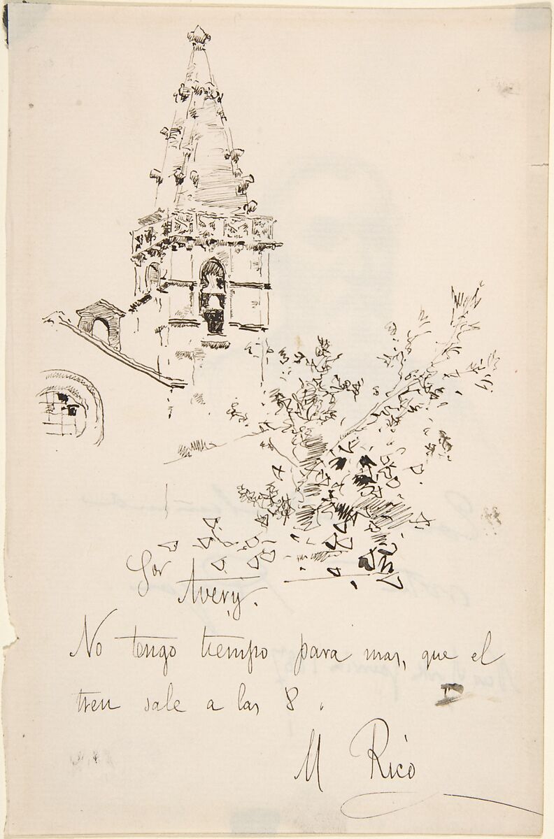 - Title: Church Tower with Inscription in Spanish to Avery. Verso: 3/4 View Portrait of Man