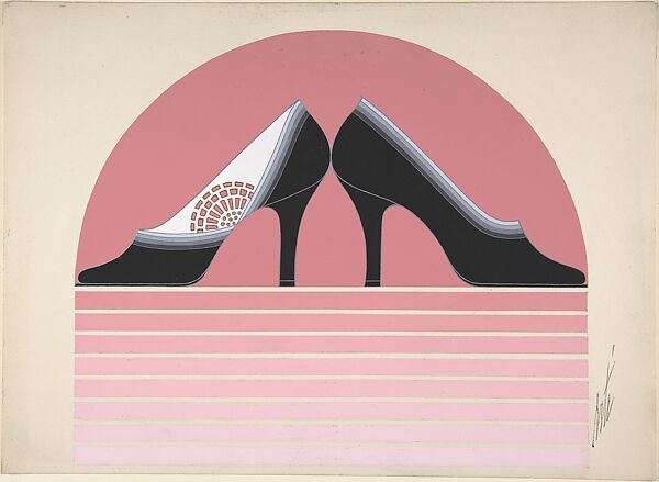 This line from a 1935 Vogue advertisement beautifully captures the image that Herman Delman (1895–1955) created for his New York shoe company. Delman Shoes stood for comfort and quality and also were true eye-catchers during a night out on the town. They became the favorites of many socialites and film stars whom Delman also recruited to feature in his advertisements. To create unique footwear designs, the businessman attracted various well-known designers including Erté (Romain de Tirtoff, French, born Russia, 1892–1990, see designs nearby), Roger Vivier (French, 1913–1998) and Herbert Levine (American, 1916–1991). Another important contributor was Steven Arpad (French, 1904–1999), who designed an extensive line of shoes for Delman and Balenciaga, but did so anonymously. The Museum owns a group of seventy-five prototypes and a collection of his original sketches, which allow us to catch a glimpse of the uniqueness and modernity that characterized shoe designs of the 1930s.
