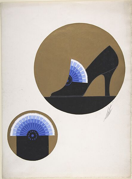 This line from a 1935 Vogue advertisement beautifully captures the image that Herman Delman (1895–1955) created for his New York shoe company. Delman Shoes stood for comfort and quality and also were true eye-catchers during a night out on the town. They became the favorites of many socialites and film stars whom Delman also recruited to feature in his advertisements. To create unique footwear designs, the businessman attracted various well-known designers including Erté (Romain de Tirtoff, French, born Russia, 1892–1990, see designs nearby), Roger Vivier (French, 1913–1998) and Herbert Levine (American, 1916–1991). Another important contributor was Steven Arpad (French, 1904–1999), who designed an extensive line of shoes for Delman and Balenciaga, but did so anonymously. The Museum owns a group of seventy-five prototypes and a collection of his original sketches, which allow us to catch a glimpse of the uniqueness and modernity that characterized shoe designs of the 1930s.
