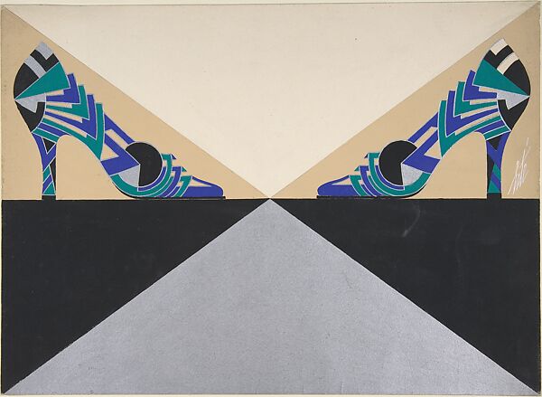This line from a 1935 Vogue advertisement beautifully captures the image that Herman Delman (1895–1955) created for his New York shoe company. Delman Shoes stood for comfort and quality and also were true eye-catchers during a night out on the town. They became the favorites of many socialites and film stars whom Delman also recruited to feature in his advertisements. To create unique footwear designs, the businessman attracted various well-known designers including Erté (Romain de Tirtoff, French, born Russia, 1892–1990, see designs nearby), Roger Vivier (French, 1913–1998) and Herbert Levine (American, 1916–1991). Another important contributor was Steven Arpad (French, 1904–1999), who designed an extensive line of shoes for Delman and Balenciaga, but did so anonymously. The Museum owns a group of seventy-five prototypes and a collection of his original sketches, which allow us to catch a glimpse of the uniqueness and modernity that characterized shoe designs of the 1930s.