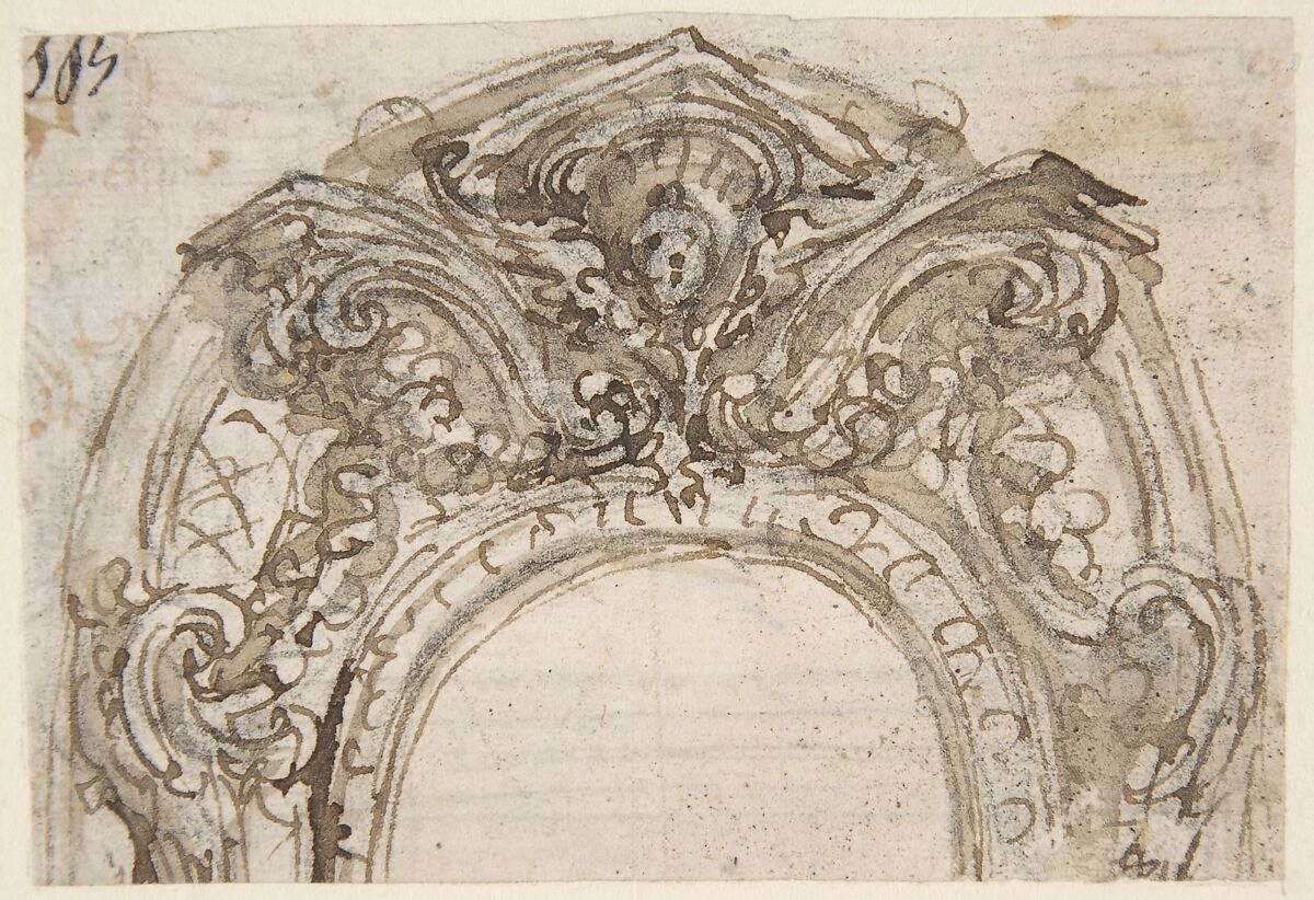 - Title: Design for the Top of an Arch, Decorated with a Cherub (recto); Design for the Frame of a Frieze (verso)