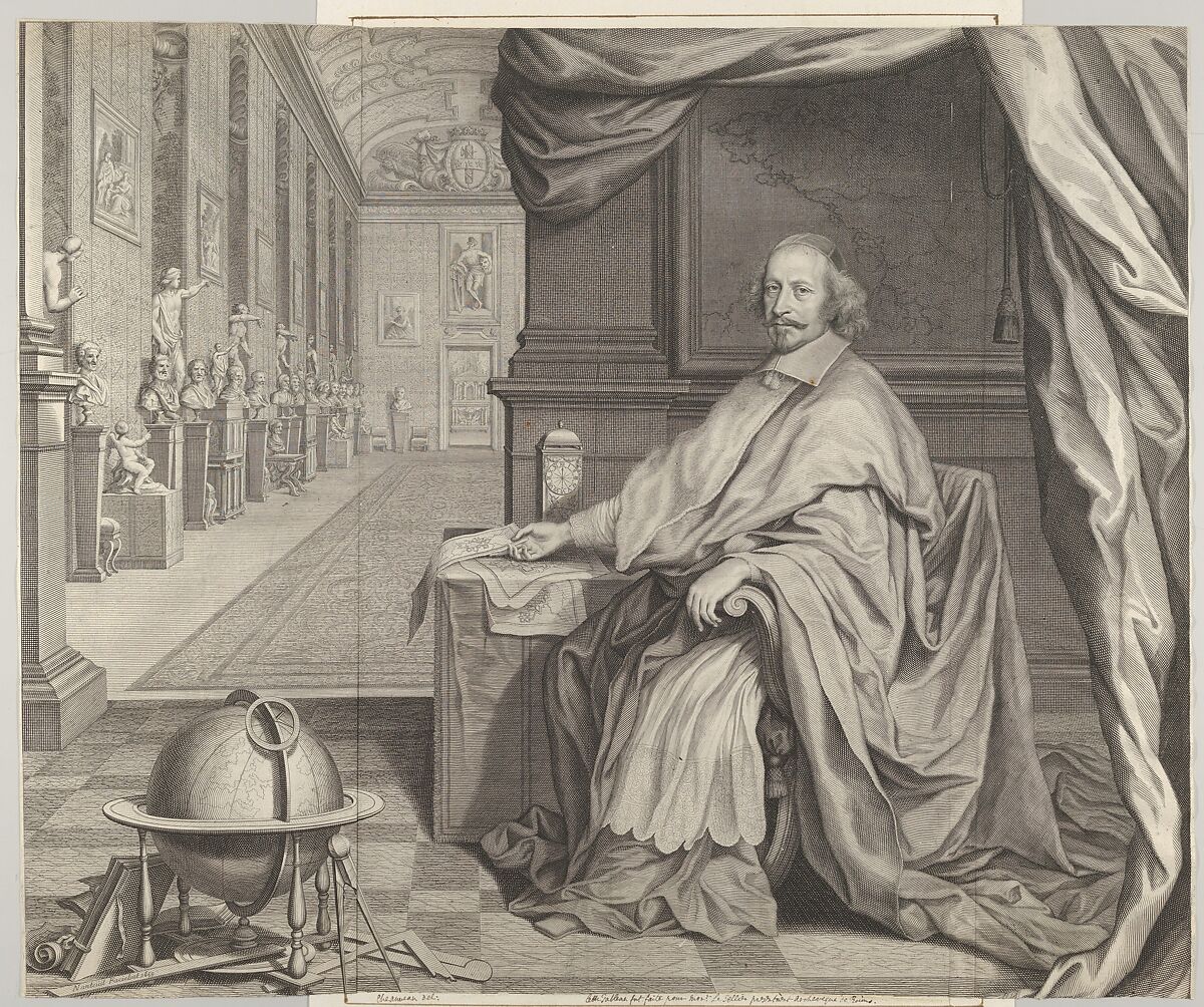 - Title: Cardinal Jules Mazarin Seated Within the Gallery of his Palace