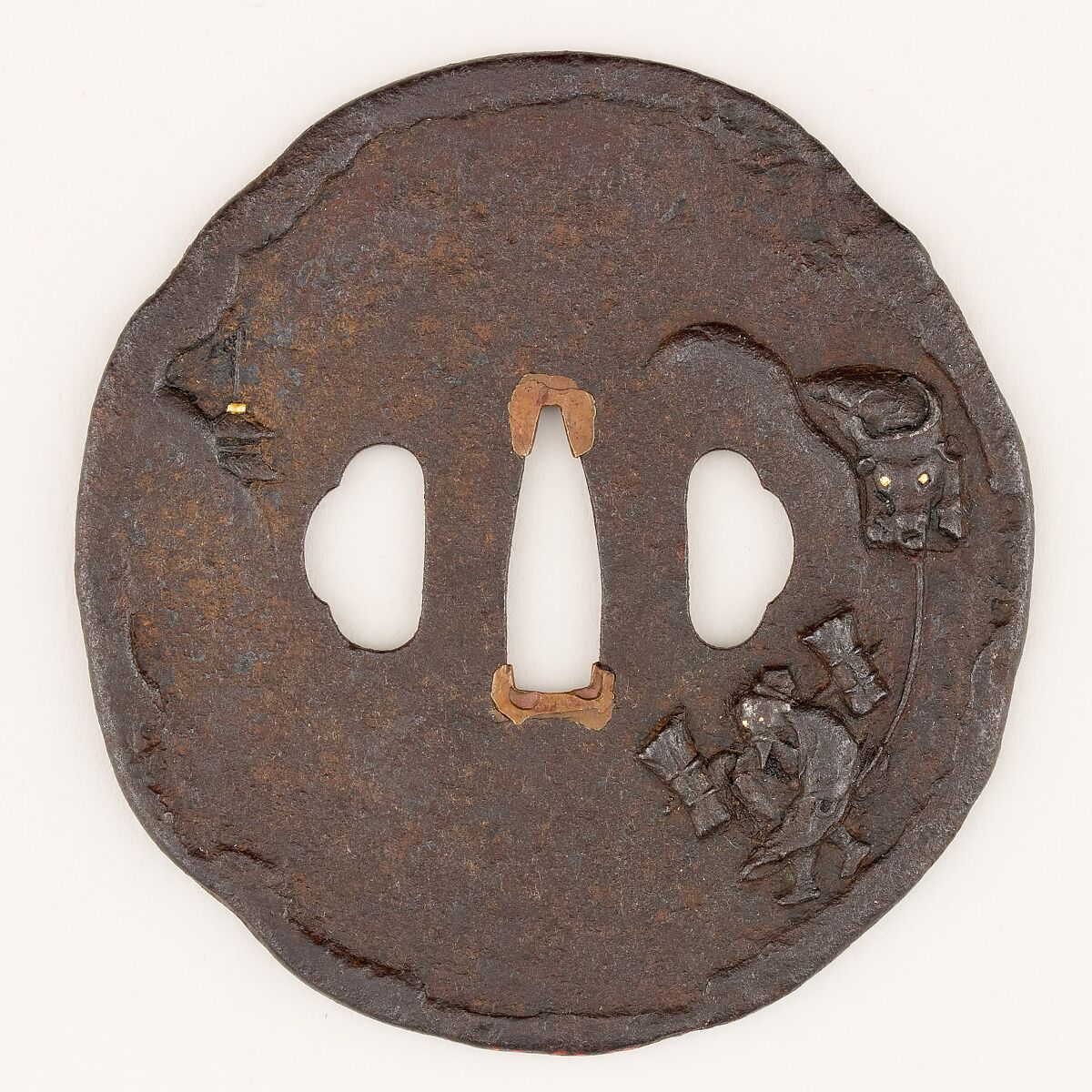 A tsuba is a sword guard and part of a sword mounting. It is mounted between the sword’s blade and grip to protect the user’s hands.