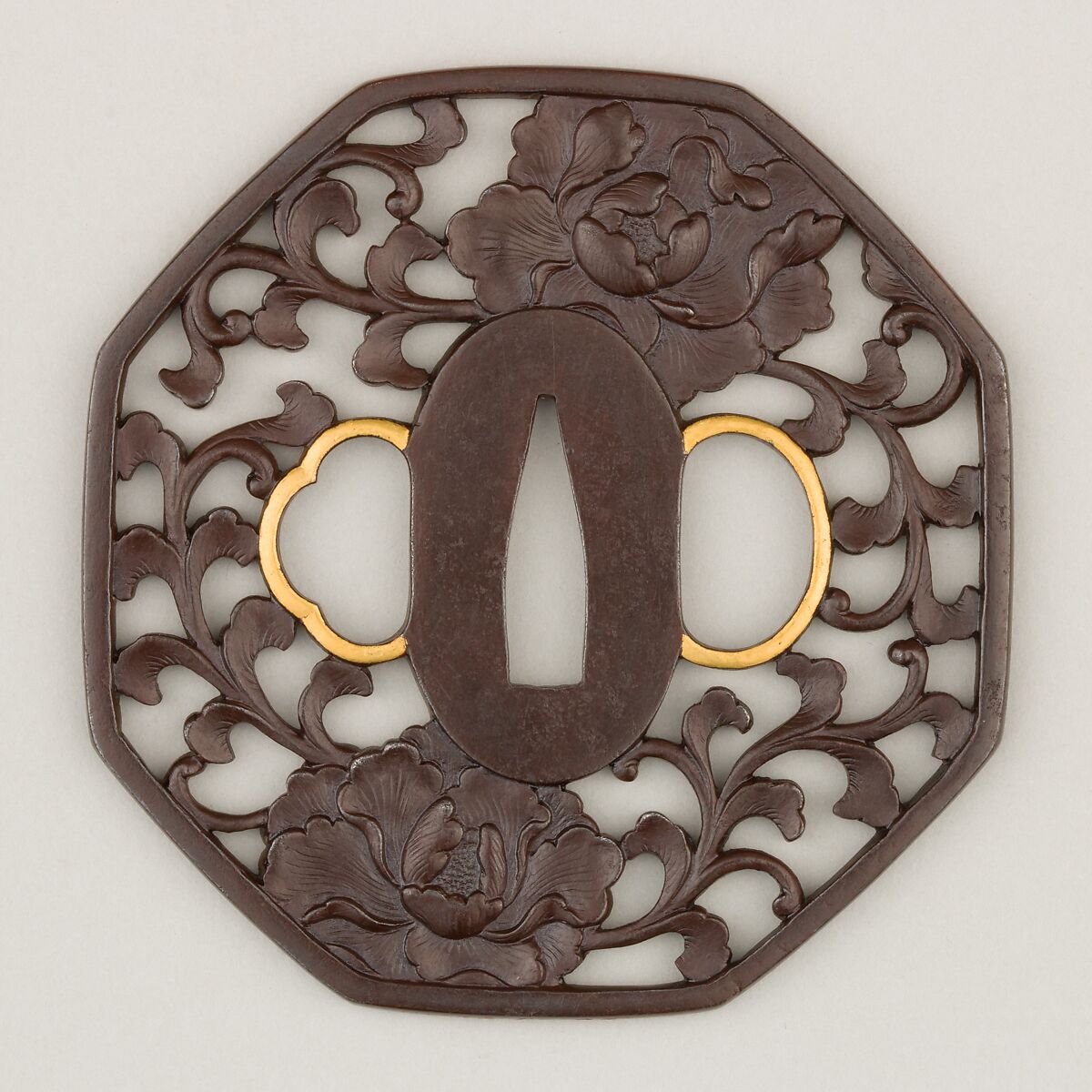 A tsuba is a sword guard and part of a sword mounting. It is mounted between the sword’s blade and grip to protect the user’s hands.