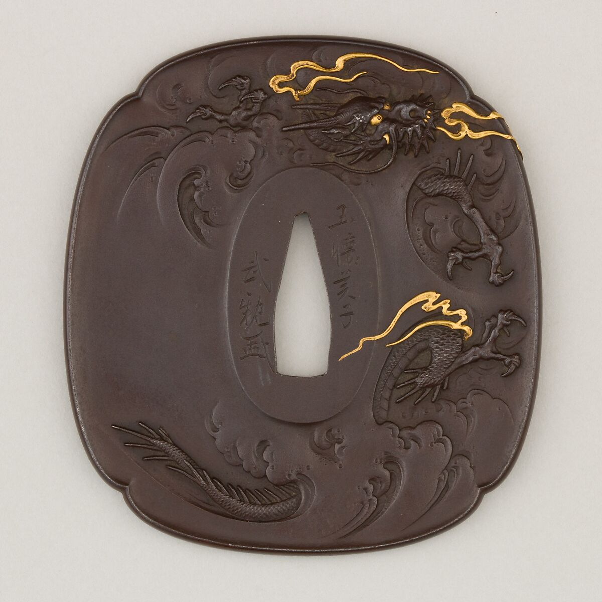 A tsuba is a sword guard and part of a sword mounting. It is mounted between the sword’s blade and grip to protect the user’s hands.