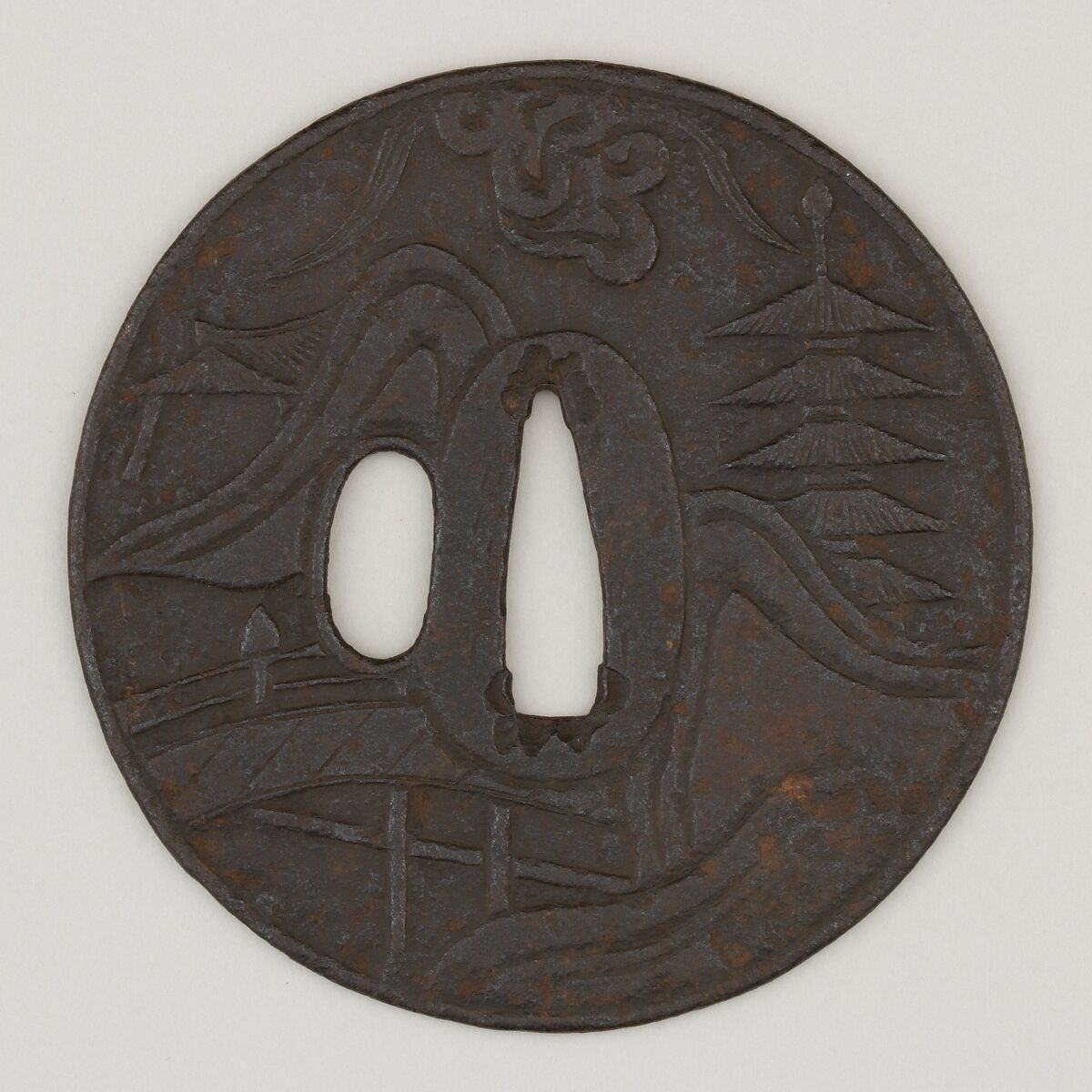 A tsuba is a sword guard and part of a sword mounting. It is mounted between the sword’s blade and grip to protect the user’s hands.