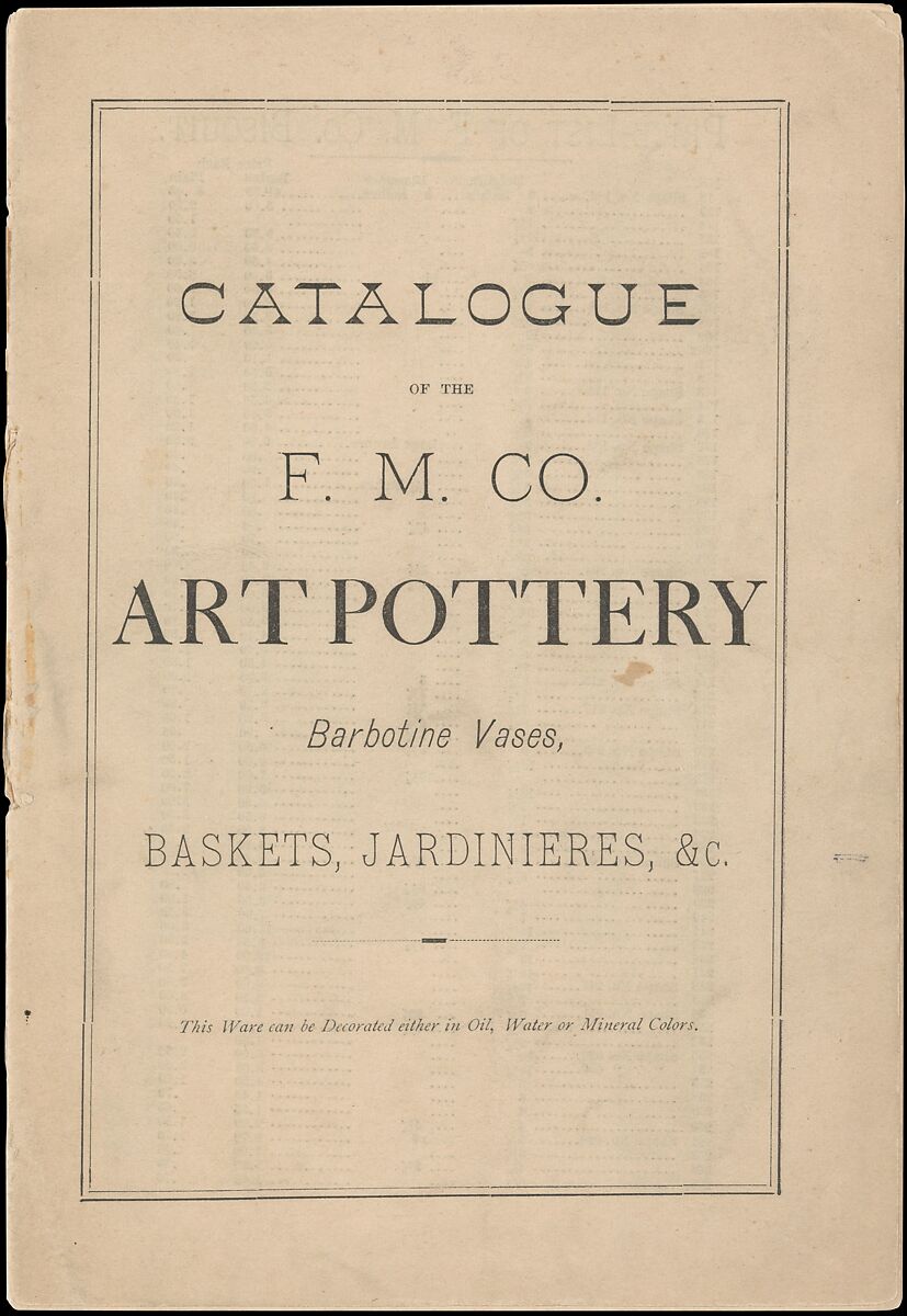 - Title: Catalogue of the F. M. Co., Art Pottery, Barbotine Vases, Baskets, Jardineres, &c.
