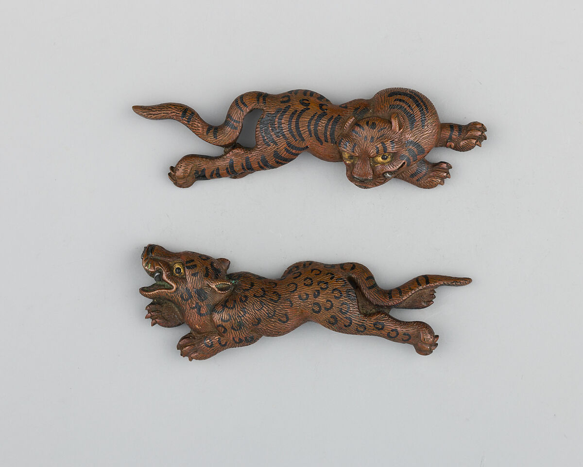 - Dimensions:Menuki (a); L. 2 in. (5.1 cm); Wt. 0.3 oz. (8.5 g); menuki (b); L. 2 1/8 in. (5.4 cm); Wt. 0.3 oz. (8.5 g)